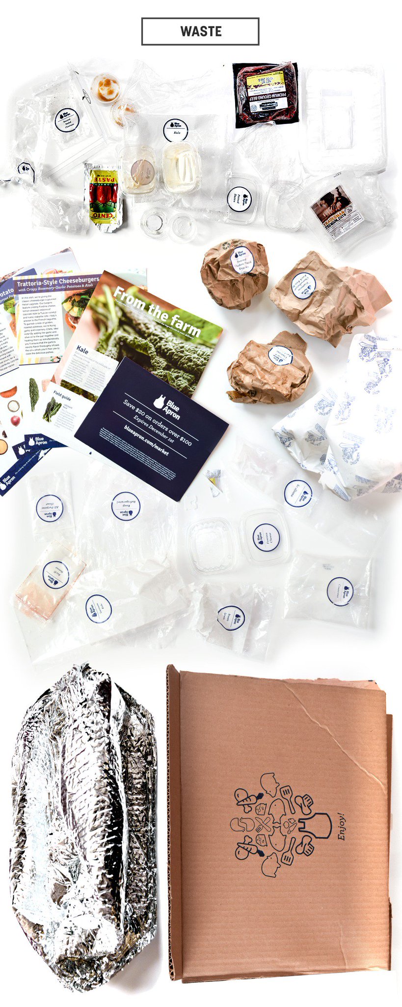 I heard farm to trashcan waste is the worst. Blue Apron seems to mitigate all of that and most of their packaging is recyclable. Just what I heard, don't know how the industry really works. We have reproduced several recipes with red cabbage and thrown out more than 60% every single time.